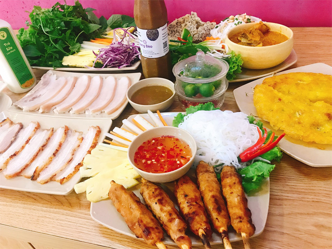 Ngoài món chính là bánh tráng cuốn thịt heo, quán còn phục vụ thêm nhiều món ăn đặc sản khác như: bánh tráng cuốn thịt heo, nem lụi, mắm nêm, bò nhúng dấm, mì quảng ếch, mì quảng gà, nem chua rán …